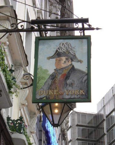 ロンドンのパブの名前は、我々の感覚からするとかなり変わっている。 「ヨーク公爵」とか「やまあらし」とか「牛と口」とか、そういう言語感覚はイギリスならではのものである。同じアングロサクソンと言っても、ニューヨークのパブにはあまりこういうものはない。