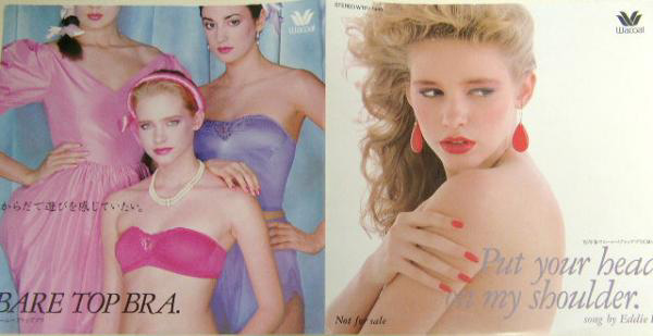 ジャケットはワコールのモデルのピンナップ。 肩越しに振り向くモデルさんのショットは、一般発売発売盤にも使用されているが、微妙にアングルが異なっている^^(右端の画像が一般発売盤の裏ジャケ)。